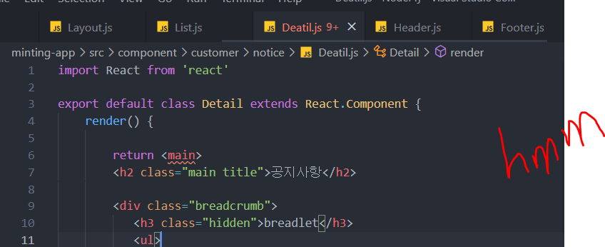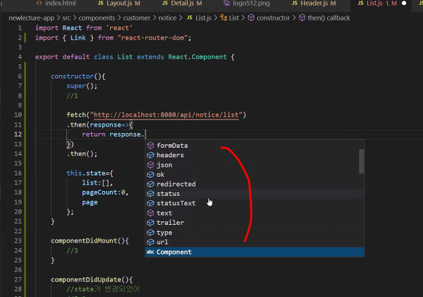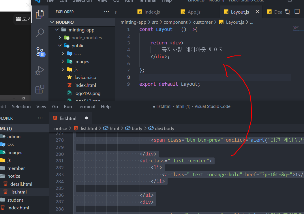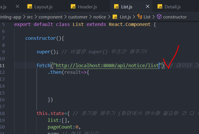 근데 저 자리는 list.js 나오거나 detail.js가 나와야 하는 것