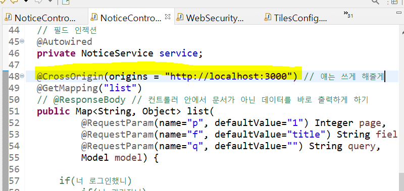 http://localhost:8080/api/notice/list 한테 가서 '쓰게 해주세요' 해야함