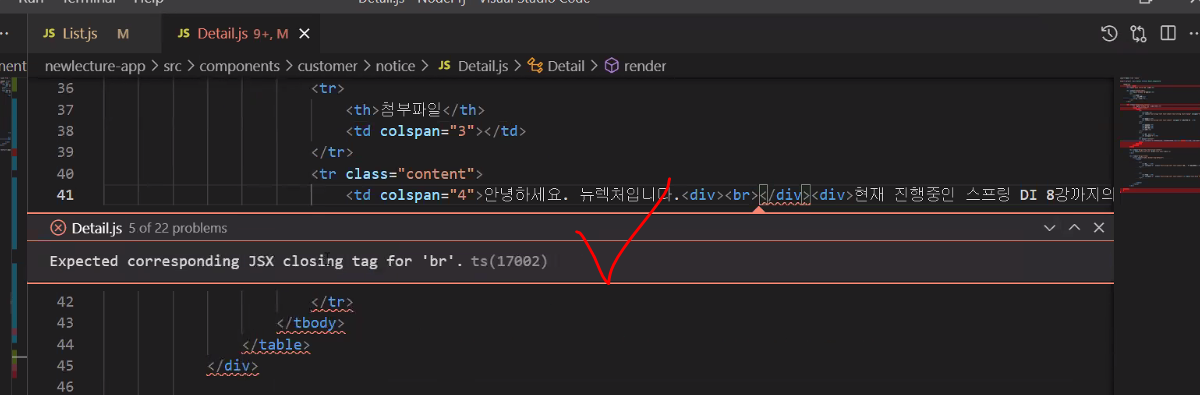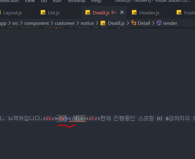 그래서 내리다 보면 <br> 태그에 closing 태그가 없다고 나오는데 .... 유레카!