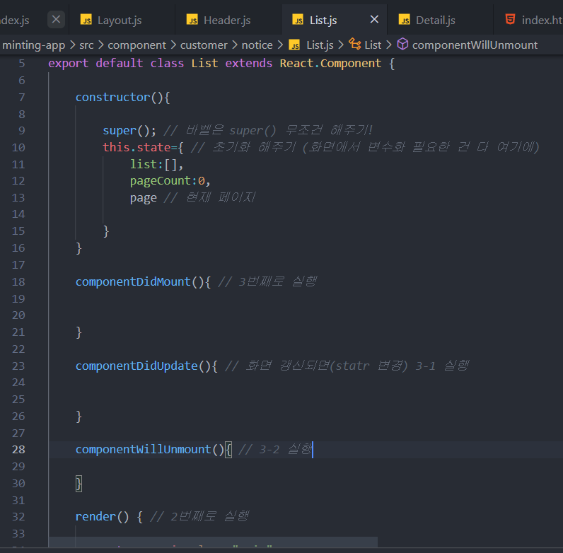 저번에는 mount 안에다가 넣었었고, 오늘은 생성자 안에 넣었는데