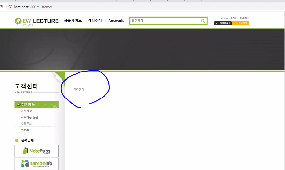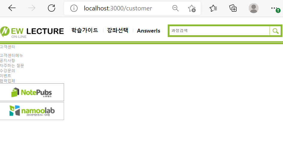 테스트하려고 layout.js에 '고객센터'를 넣었는데 옆에 나오는게 아니라 저렇게 아래 나옴