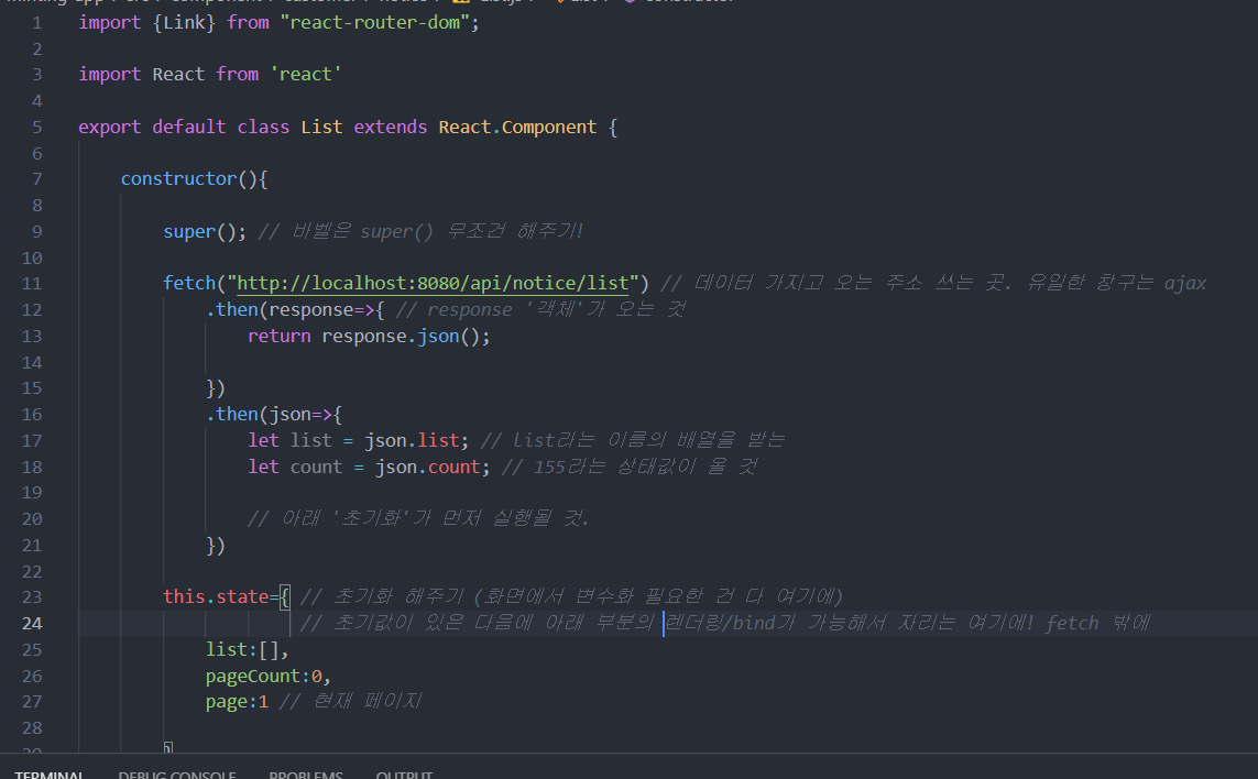 24. 렌더링/ bind 하기 위해서는 초기값이 없으면 오류가 나기 때문에 초기값 설정은 fetch 밖에다가.