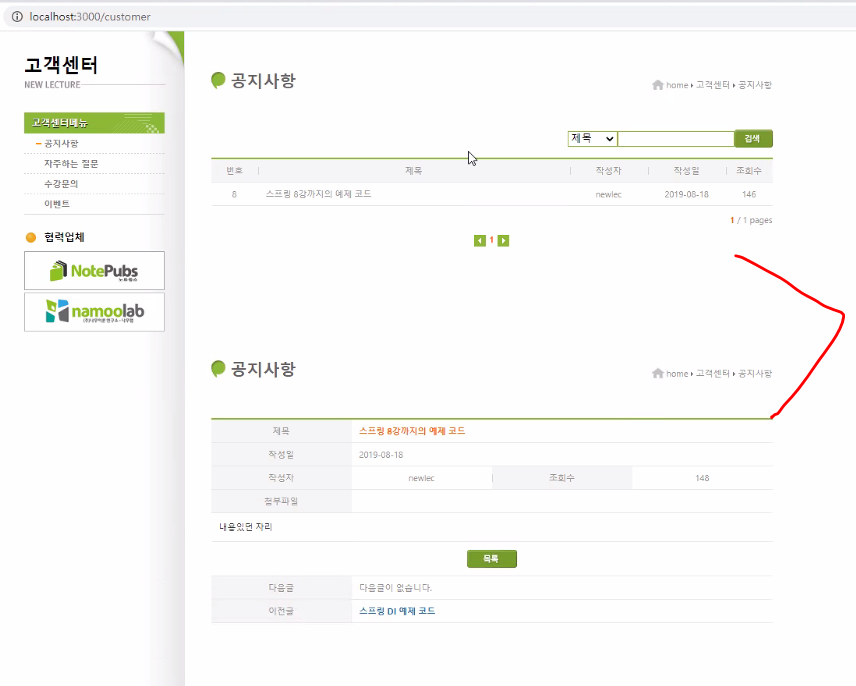 url 에 cutomer/list, customer/detail 하면 각각 나옴